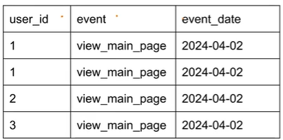- 일자별 집계(원본 데이터는 특정 시간에 어떤 유저가 한 행동이 기록, 일자별로 집계)