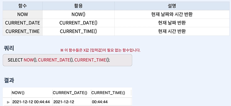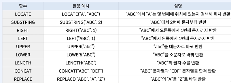 - 함수 이름(함수를 적용할 값 또는 칼럼 이름) 형식