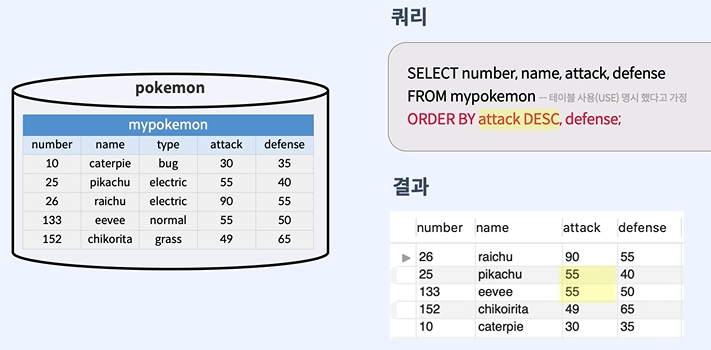 ㄴ 기본 규칙은 오름차순 / 내림차순 DESC